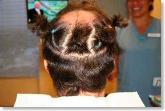 First, Dr. Deutsch came in and sketched a hairline on my head. He also marked the donor area on the back of my head.