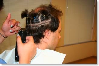 Once that was over, a movie was put on while the medical assistants proceeded to place the hairs in the newly created slits. They were done with all 3000 a few hours later at 3:30 PM. They were very efficient. The doctor came in occasionally to inspect the work and praised them on the good job they did.